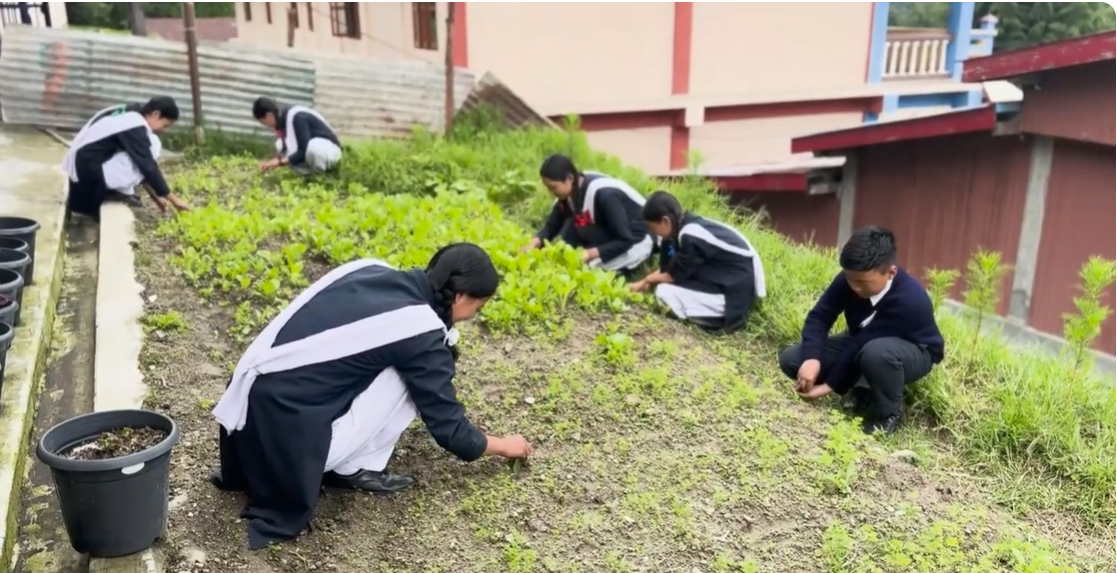 In this tutorial, students of GHS Lhou, Tawang share how they learn beyond the classroom through their school kitchen garden. Every Saturday, they practice organic farming, growing fresh vegetables for their midday meals. This hands-on experience teaches them about sustainable farming, healthy eating, and important life skills like teamwork and responsibility.